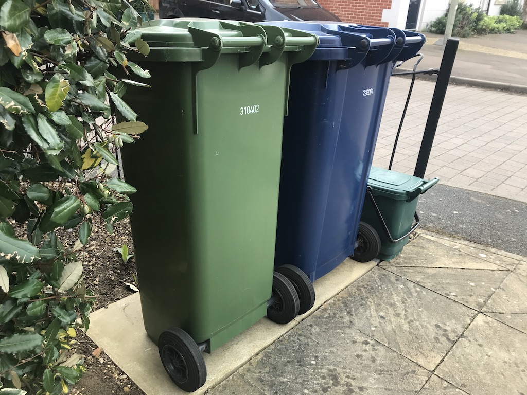 For nearly two decades now we’ve lived in two places, the second being our cottage in North Northumberland. As a result, we’ve had to take account of different refuse and recycling regimes. In Northumberland, for example, we still are not permitted to put glass (i.e. the empties) in the blue recycling bin, leading (after a houseful) to the shaming experience of emptying a few dozen beer and wine bottles into a skip either in Wooler or at the Red Lion in Milfield. Whichever I choose, I invariably meet someone I know and suffer that uneasy feeling that they’re counting.